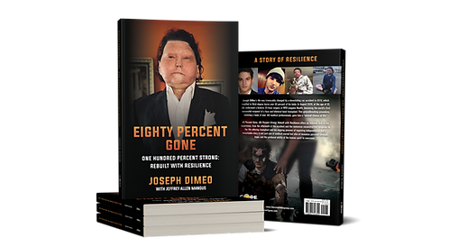 Welcome to Joe Roy DiMeo’s official site, where resilience meets action. Here, you can explore Joe’s story through his upcoming book, 80 Percent Gone, 100 Percent Strong: Rebuilt with Resilience, which shares his journey following his face and bilateral hand transplant. Support Joe’s mission by visiting his merchandise shop, where each purchase helps continue his work to inspire and empower others. Thank you for being part of his cause.
